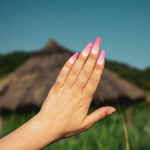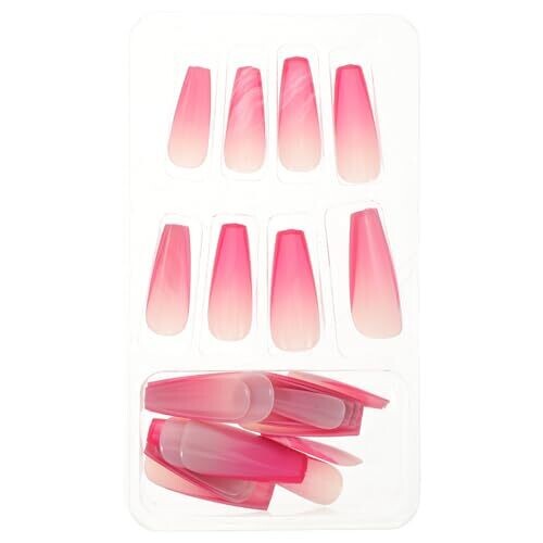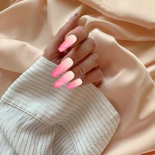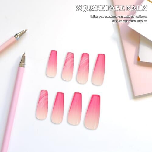 Stunning pink ombre gradient nails with a modern square French-tip, offering full-coverage, quick, mess-free application. Reusable and removable for flexible styling, ideal for daily wear or parties, delivering a glossy, durable finish from morning to night.