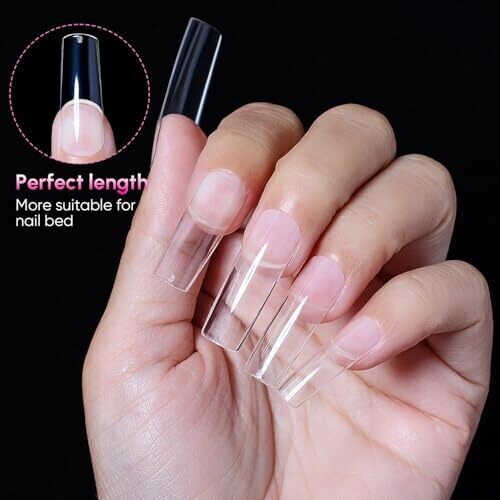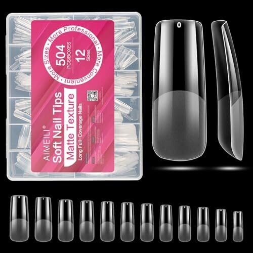 Aimeili Long Square Nail Tips Gel Tips 12 Sizes, 504pcs Half Matte Press Nails