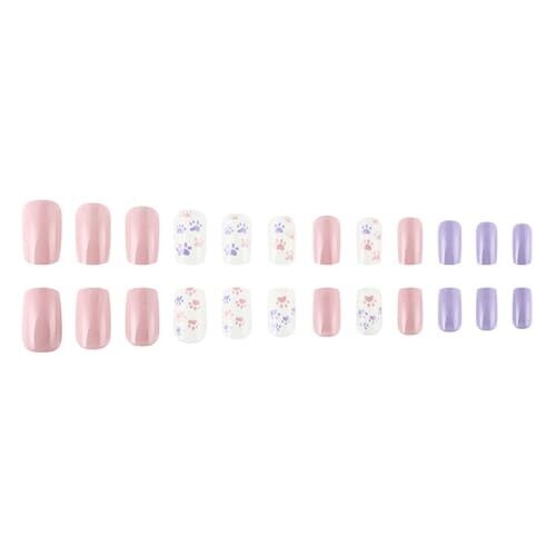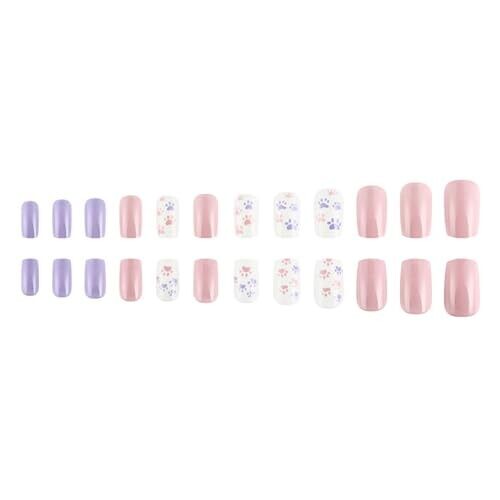 • Fake Nail Press-On Square Cat Paw Nails Design French Tips Gift