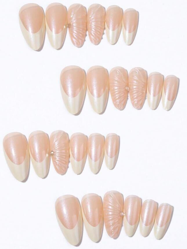 • 24-Piece Press On Nails Set Stiletto Almond Length (3D Pearl Almond)