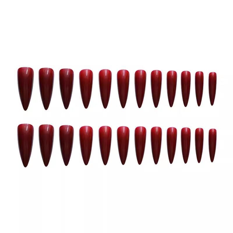 Wsimily 24pcs Press On Nails Long Full Cover Stiletto (Dark Red)