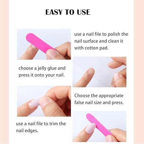 • Includes everything you need for a complete DIY manicure—24 full-cover nails, jelly glue, and a double-sided nail file for instant glam.